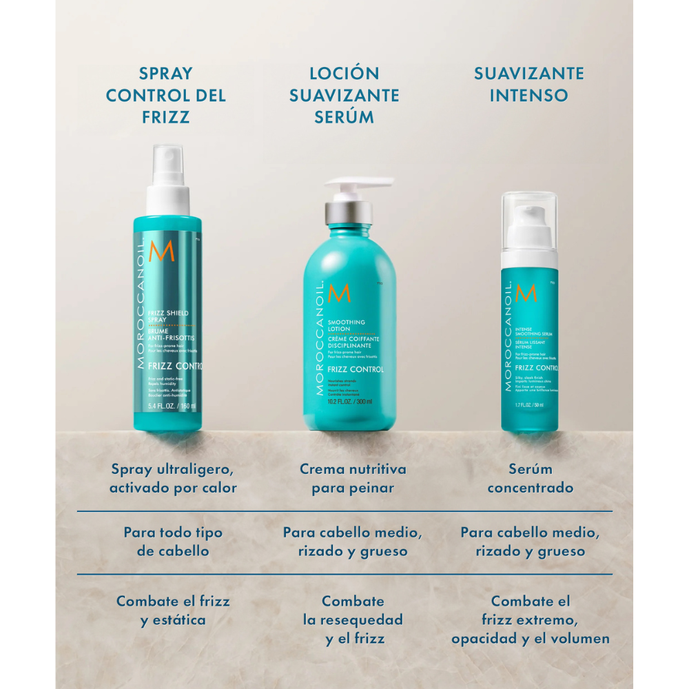 Domina el frizz con elegancia gracias al Serum Control del Frizz Moroccanoil®, una fórmula intensamente nutritiva diseñada para suavizar, alisar y aportar brillo al cabello rebelde. Enriquecido con aceite de argán, este serum reduce el frizz extremo durante hasta 72 horas, suaviza la textura del cabello y mejora su manejabilidad sin apelmazar ni dejar residuos visibles.