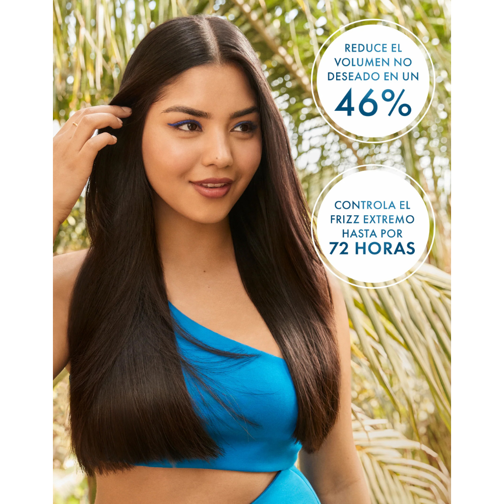 Ideal para cabello grueso, rizado o extremadamente encrespado, entrega una sensación sedosa y protegida incluso en ambientes húmedos, envolviendo cada hebra con un escudo elegante y ligero.